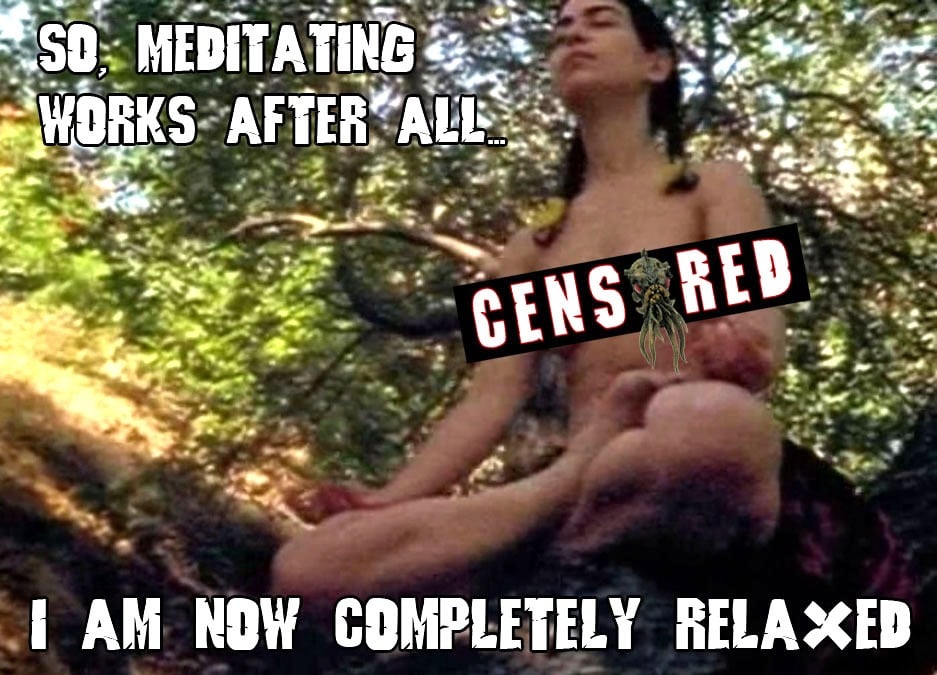 As the legend goes, Bach takes a hit of some bad acid one night, prompting him to embark on a murderous rampage. His first victim is a random hippie girl with whom he was engaged in the physical act of expressing one's love for another. Ahem. Sex. The way the scene is presented, I'm not sure if it was truly the bad acid that caused Bach to lop off her head with a machete; it may have been the fact that, by all accounts, she was merely a lousy lay. At any rate, the killings don't end with the girl, as Bach takes the machete (and her head) back to the camp proper and hacks up the majority of his followers. After he's done, Bach takes his head and machete and disappears into the woods. NEVER TO BE SEEN AGAIN!!